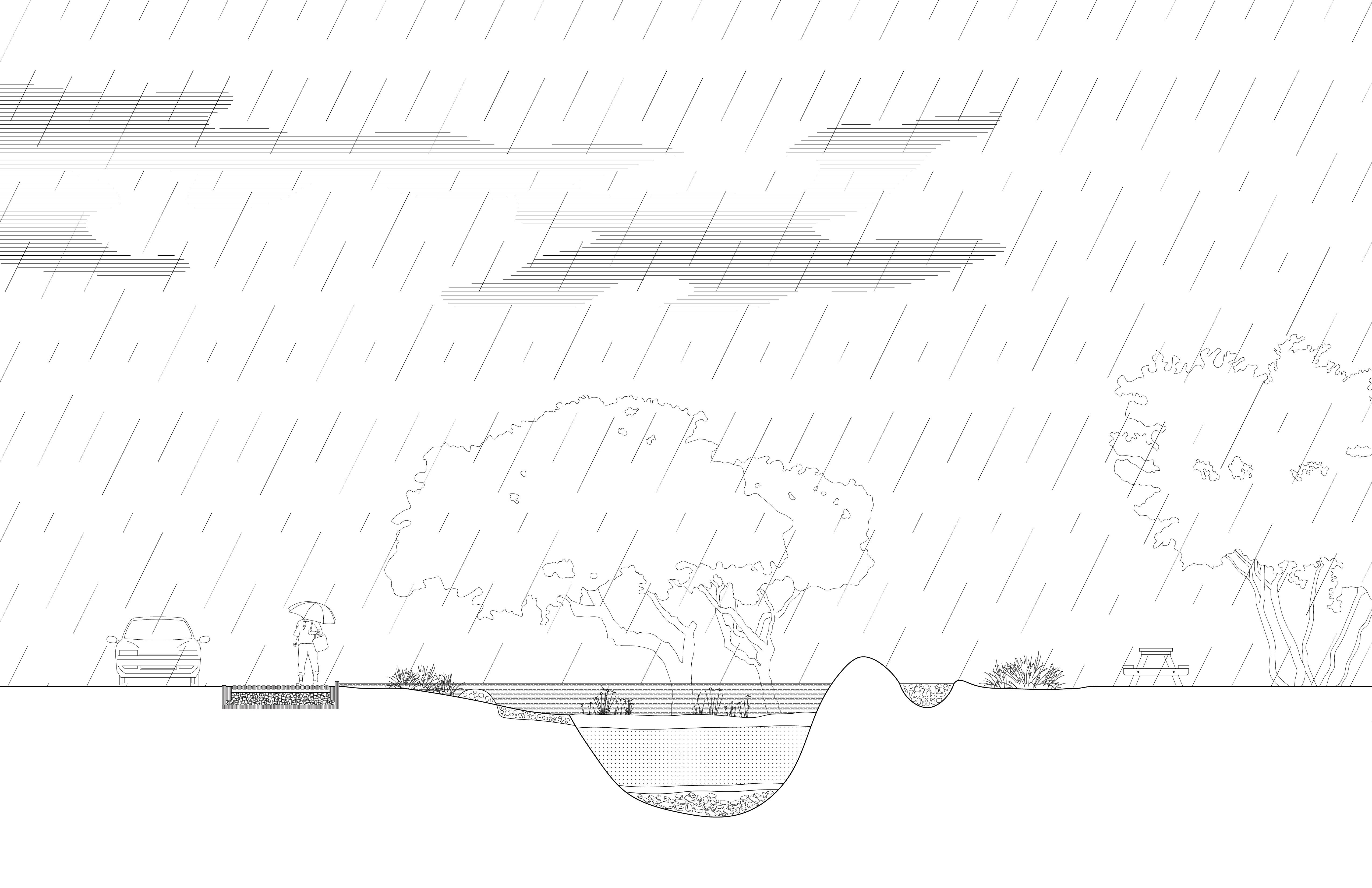 At the larger landscape scale, bioretention areas, wet ponds, and rainwater gardens will decrease stormwater runoff and flooding during storm events. These interventions will also decrease sediment and PAH (polycyclic aromatic hydrocarbon) runoff that may damage off-shore wildlife. Coupled with soil-based filtration systems, these strategies have the potential to recharge groundwater and decrease the salinity of the water table. The Esperanza environs provide the case-study for intervention since they fall within the largest alluvial valley on Vieques, where a recharged water table can make a crucial difference in resiliency and self-sufficiency.