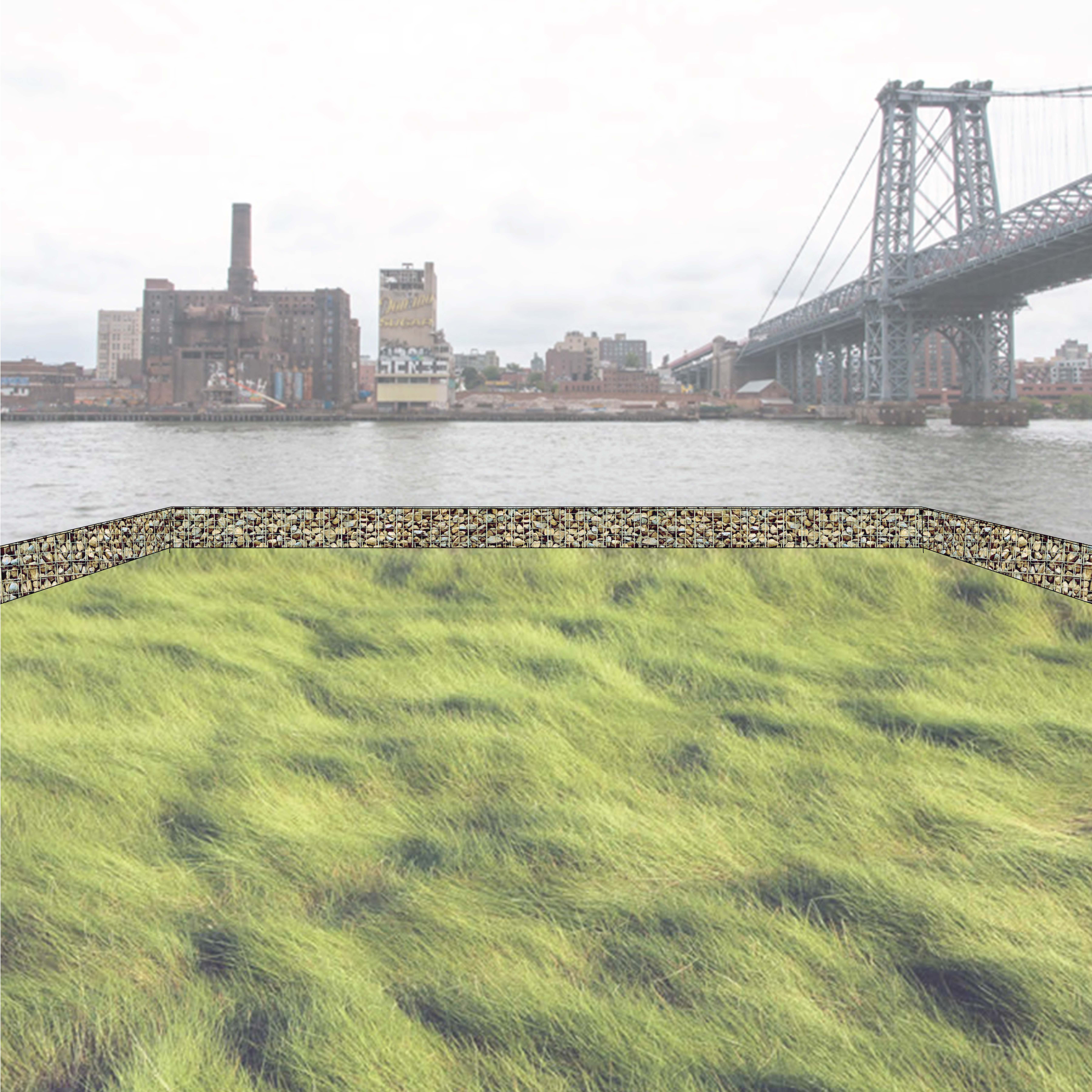 The East River Estuary Center provides educational programming for elementary- through high-school-aged students in the New York City area. The Center’s focal point is a wetlands frame, a bracketed area of the river which is filtered through an outer protective berm. This filtration berm allows for the collection of scientific data concerning the East River estuary system’s ecological health. The buffering of the interior aquatic space from the estuary at large also allows for the restoration of the enclosed space to its pre-industrial state.