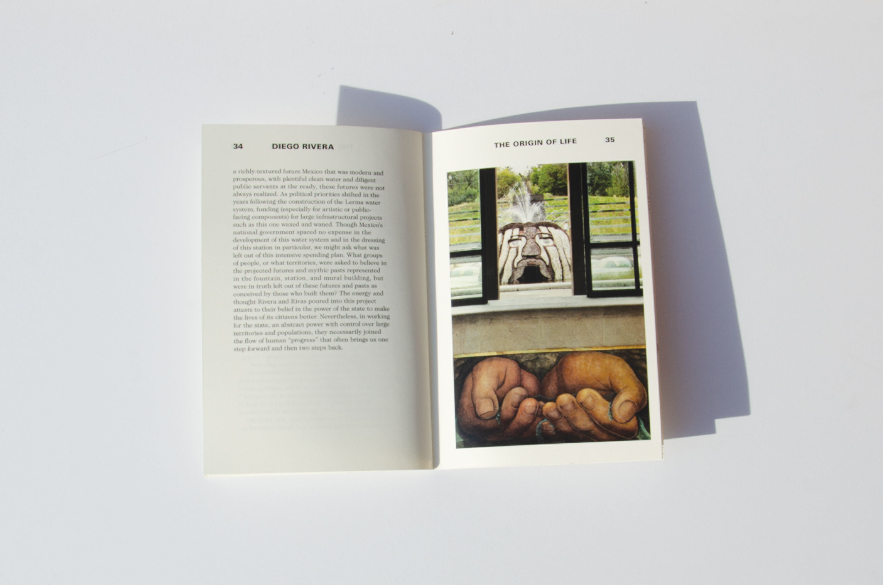 In the 1940s, the planners of a new waterworks system utilizing the Lerma River as a source of water for Mexico City retained the architect Ricardo Rivas to design a sump station in Chapultepec Park, the terminus of a new aqueduct bringing water into Mexico City. In coordination with the planners, in 1950 Rivas in turn commissioned Diego Rivera to design a mural and fountain for the facility. Like mural precedents such as those in the Secretaría de Educación Pública building in Mexico City, the intent of these artistic components was to turn the station building, which housed one small component of the physical infrastructure of the massive waterworks project, into a poetic explication and celebration of the bureaucratic and social infrastructure required to construct both the building itself and the project it synecdochally monumentalized. During its construction in 1951, at a key period of modernization in Mexico, the project of so-called plastic integration (borrowing from the more common Spanish term integración plástica) of this building and its constituent parts was harnessed by both the radical architectural functionalism of Rivas and Rivera and the nationalist interests of Mexico’s federal government.